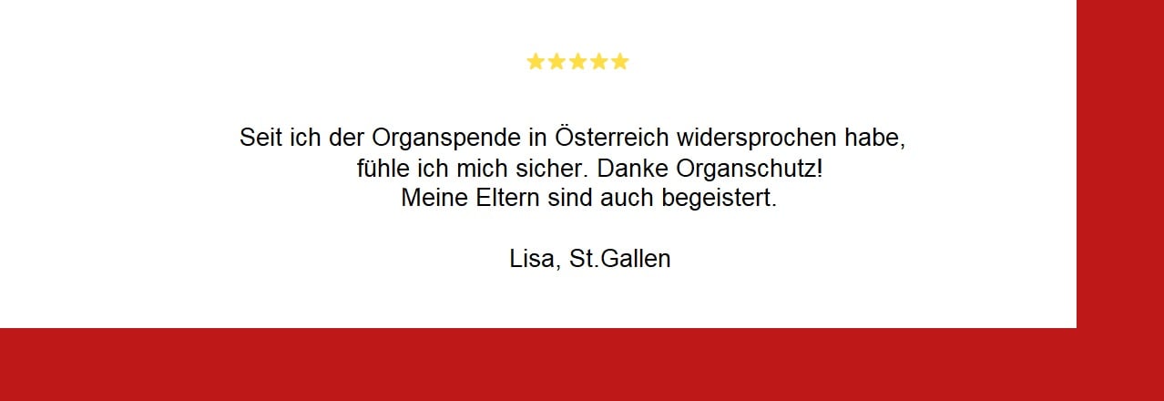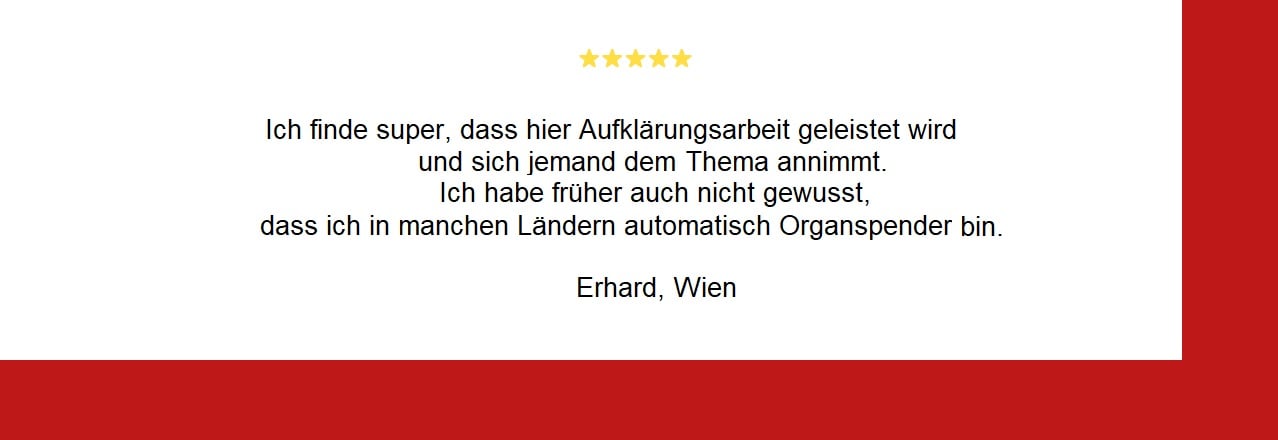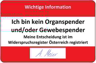In Österreich gilt die gesetzliche Widerspruchslösung bei der Organspende. Das heisst, dass jeder Mensch der sich in Österreich aufhält automatisch ein potenzieller Organspender ist.