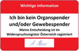 Hinweiskarte (Ich bin kein Organspender)
